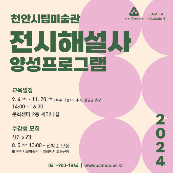 접수 신청 및 자세한 내용은 천안시립미술관 누리집을 통해 확인할 수 있으며, 전화로 문의하면 된다.