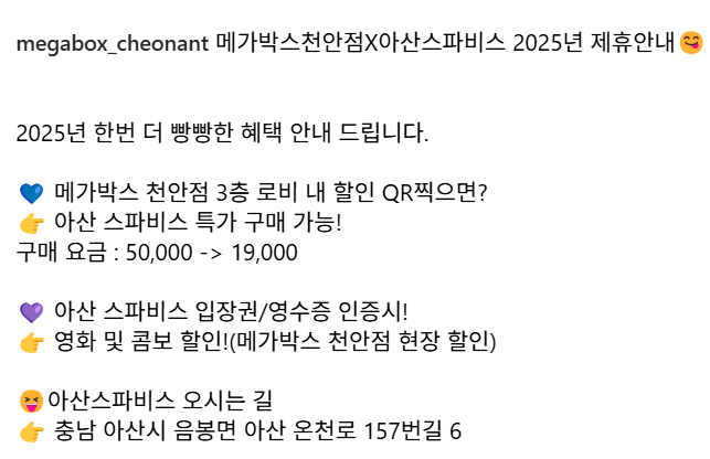 메가박스천안점 x 아산스파비스 2025년 제휴안내😋