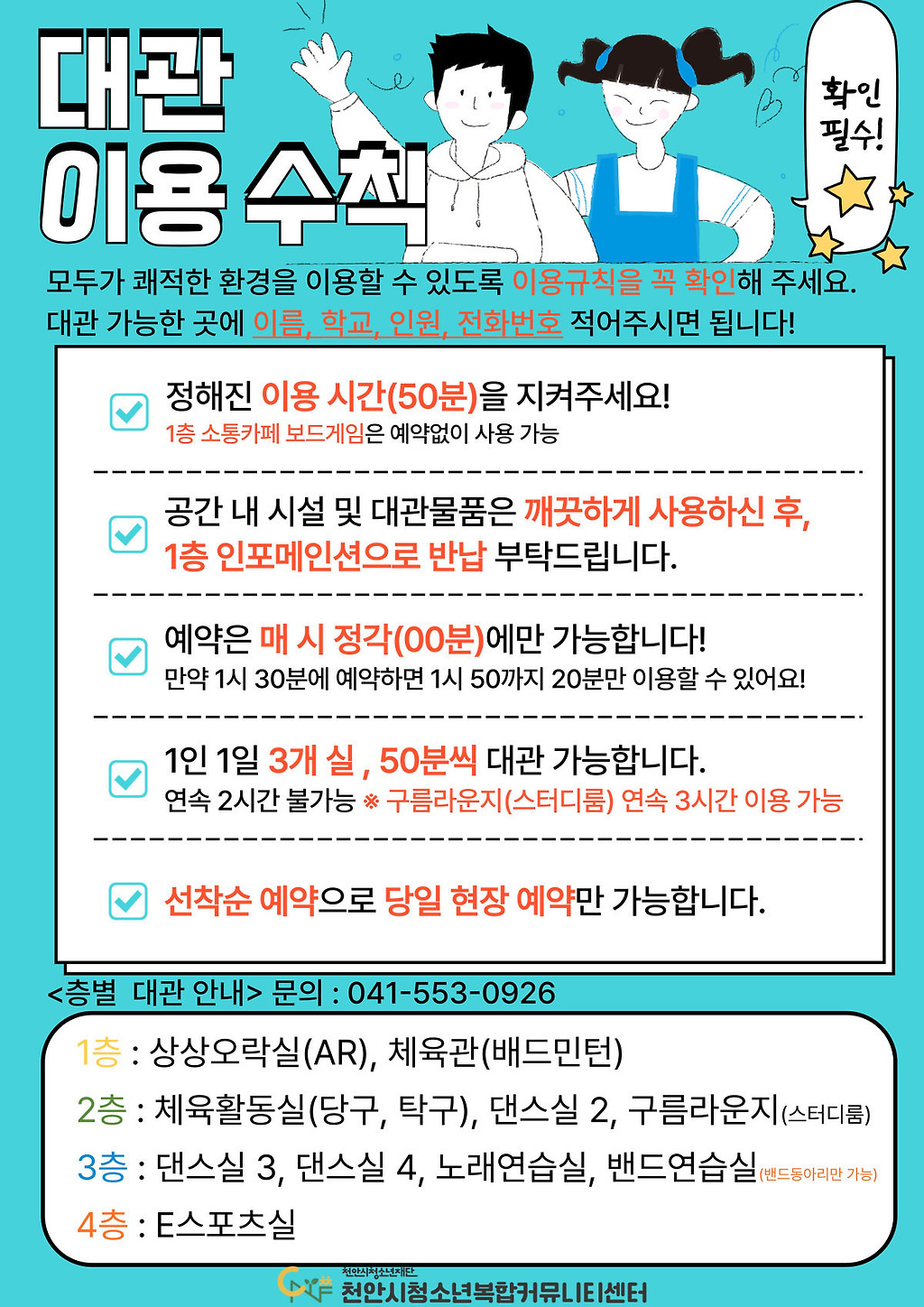 9~24세 청소년들을 위한 공간으로, 선착순.. 현장예약만 가능합니다!
