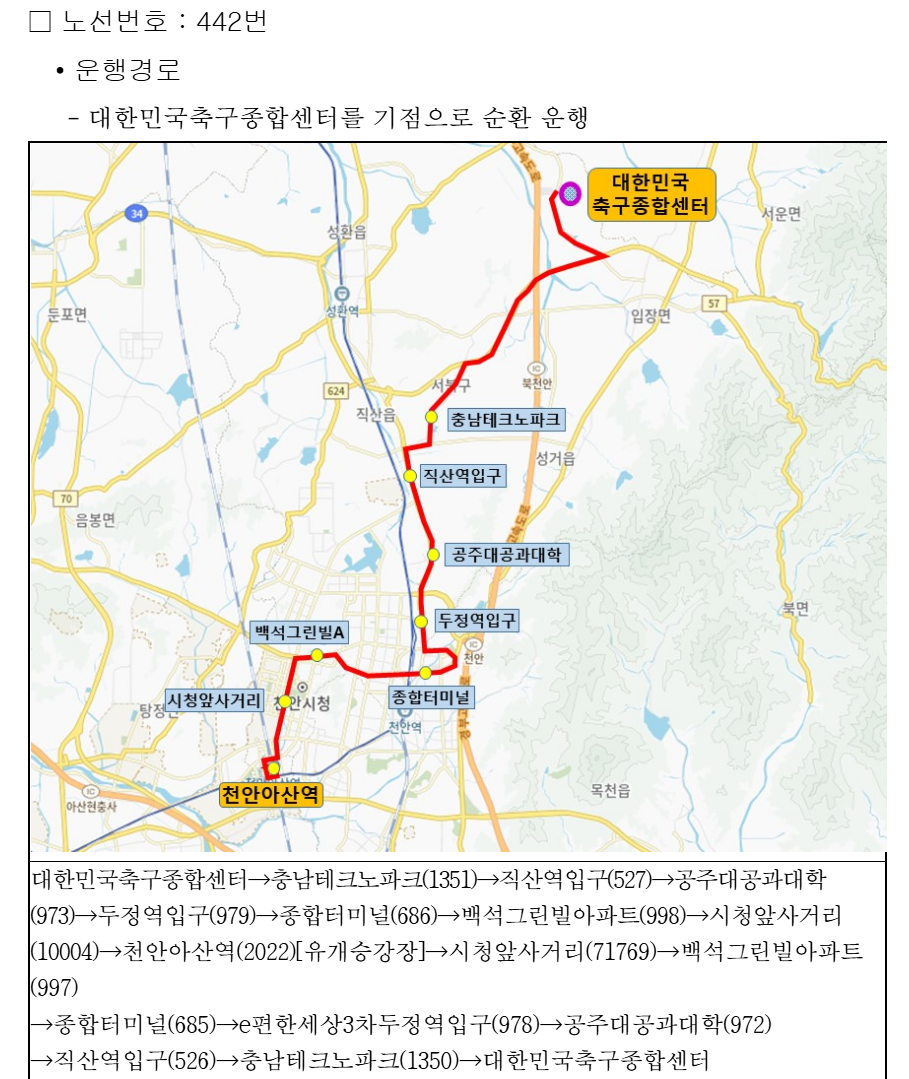 축구에서 사용되는 4-4-2 포메이션을 따서, 버스번호를 442로 정했다네요.