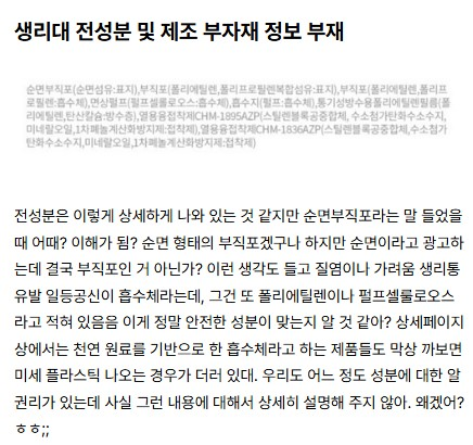 생리대에 바퀴벌레 다리나 벌레알 나오는 수준이었음