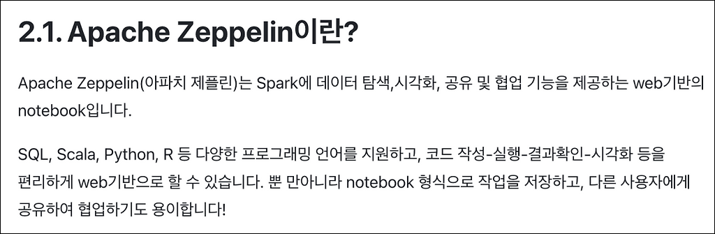 저도 제플린을 이용해보진 않았는데 제플린이라는 도구에 대해서 찾아보니, 아래와 같은 설명이 나오네요.