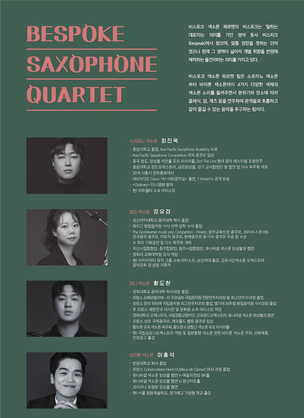 #대구연극 #대구뮤지컬 #대구공연 #대구문화 #대구공연정보 #대구무료공연 #비원뮤직홀 #비스포크_색소폰_콰르텟 #서구문화회관