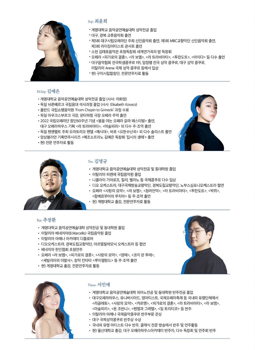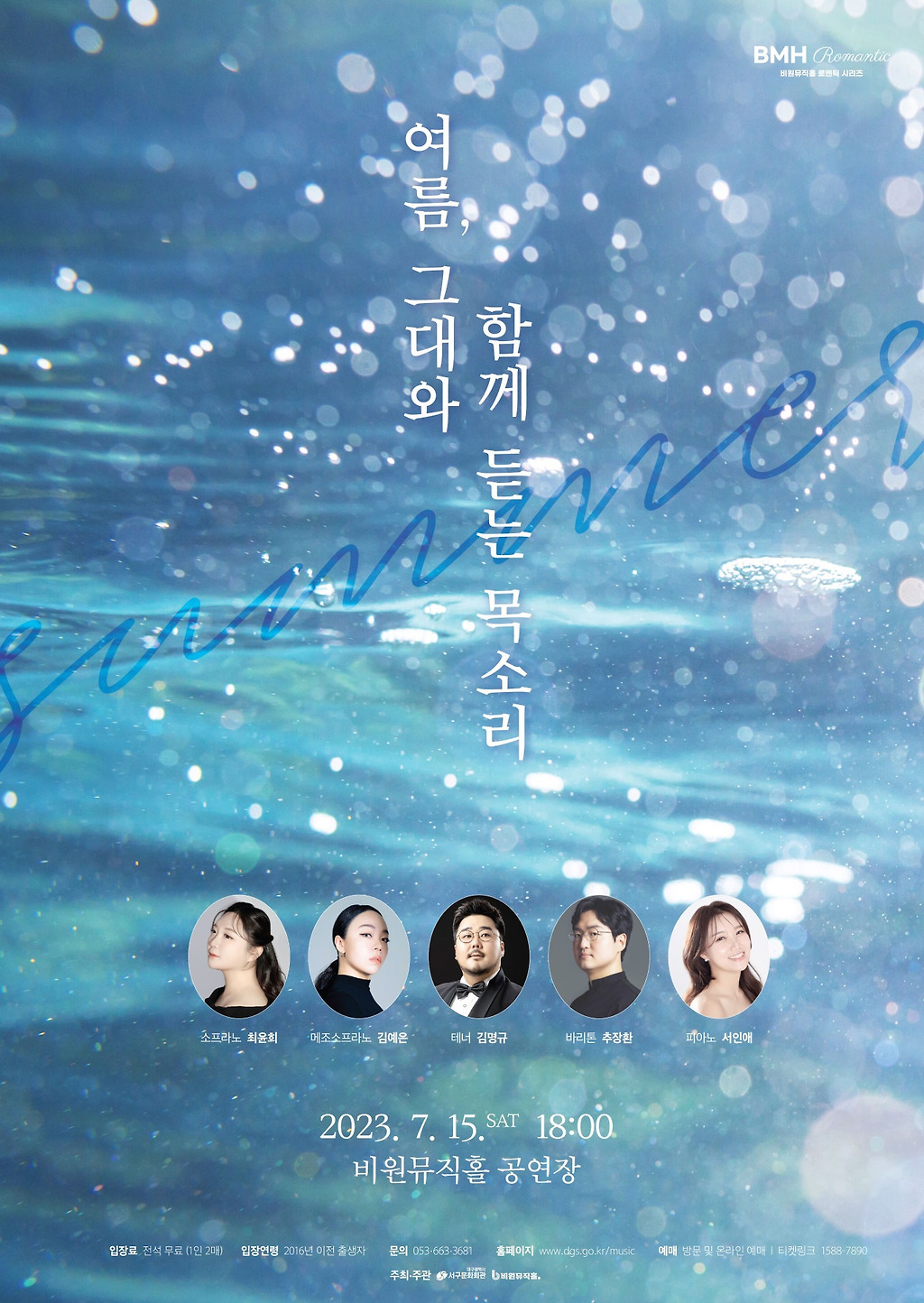 #대구연극 #대구뮤지컬 #대구공연 #대구문화 #대구오페라 #대구무료공연 #비원뮤직홀 #대구공연정보 #여름_그대와함께듣는목소리 #소프라노_최윤희 #메조소프라노_김예은 #테너_김명규 #바리톤_추장환 #피아니스트_서인애