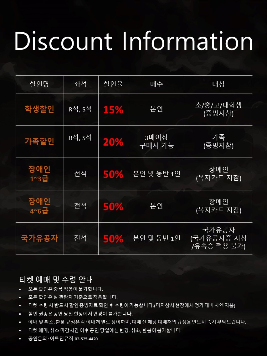 입장료 R석: 8만8천원, S석:6만6천원, A석: 4만4천원