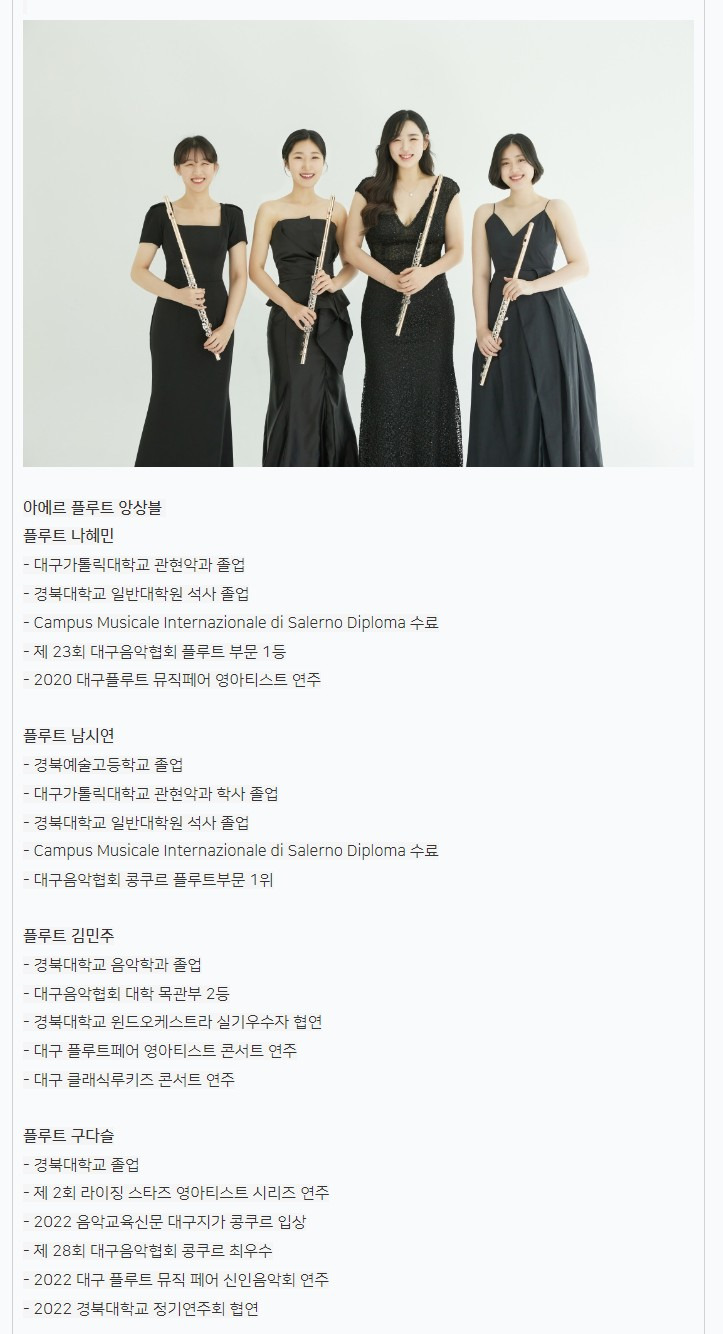 #대구연극 #대구뮤지컬 #대구공연 #대구문화 #대구클래식 #대구공연정보 #대구콘서트하우스 #대구플루트뮤직페어 #앙상블의밤 #아에르플루트앙상블 #플로아플루트앙상블 #아르케플루트앙상블