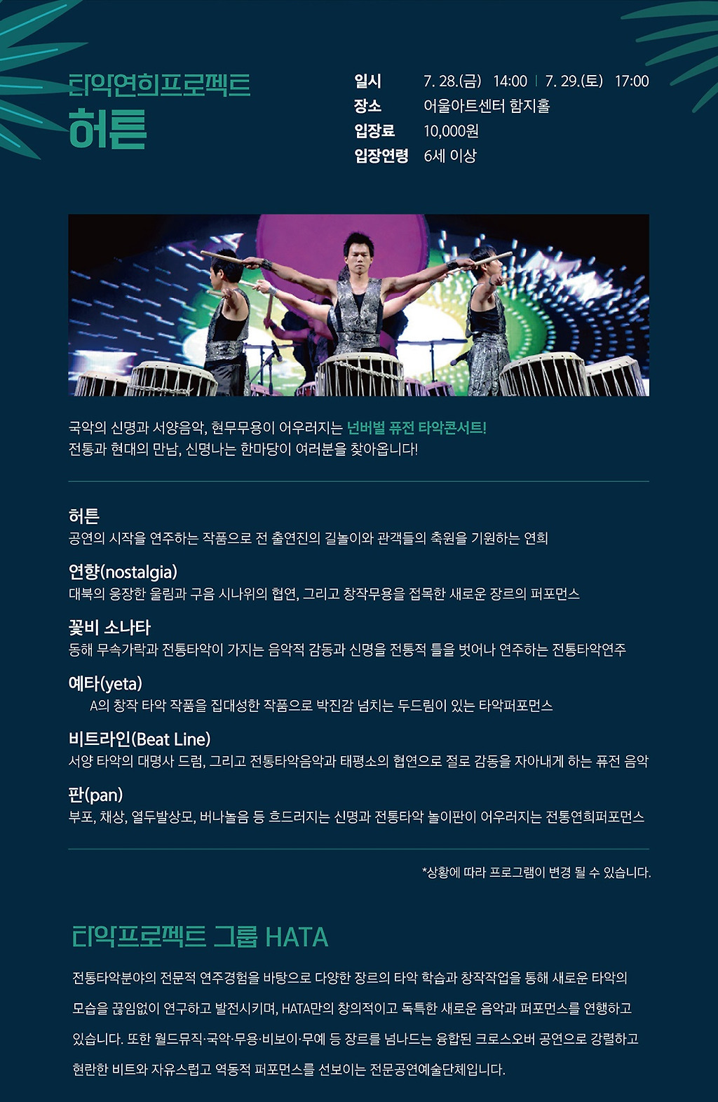 #대구연극 #대구뮤지컬 #대구공연 #대구문화 #대구공연정보 #어울아트센터 #문화가있는날 #아트바캉스 #타악연희프로젝트_허튼 #타악프로젝트그룹_HATA