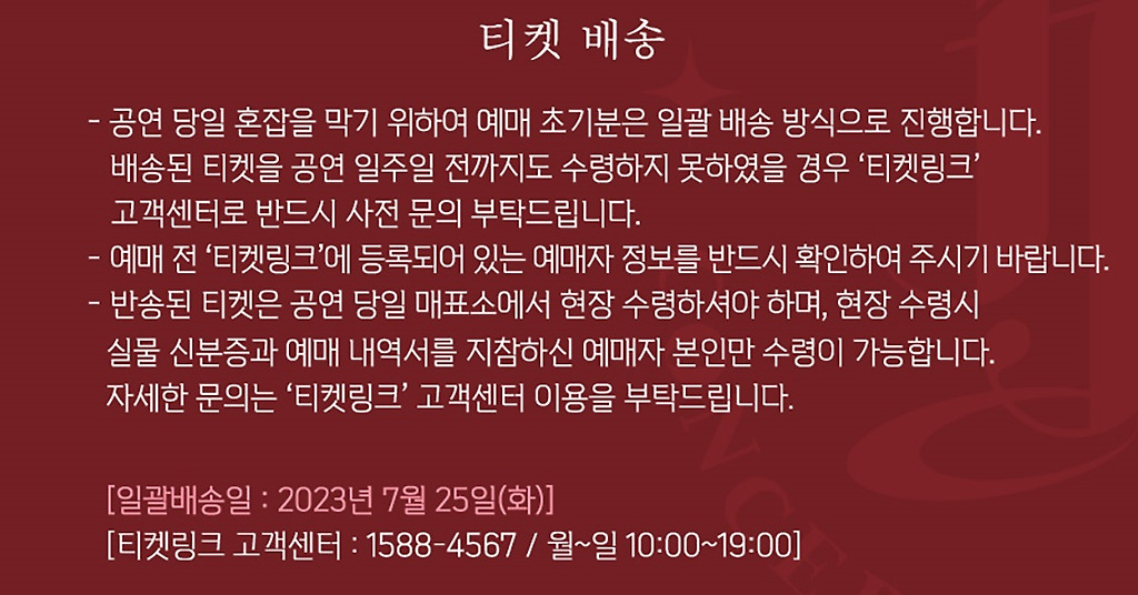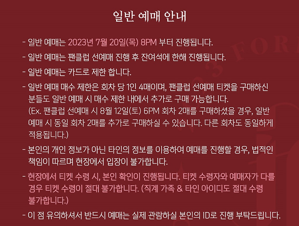* 일반예매 티켓오픈 : 2023년 07월 20일(목) 20시
