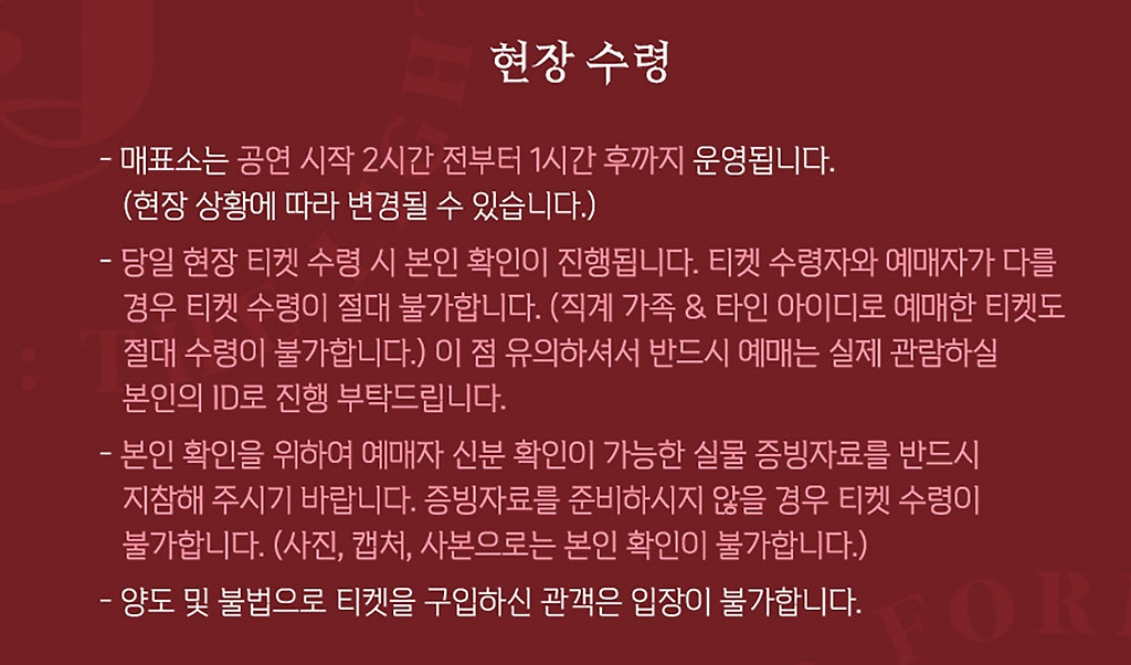 ※ 무통장 입금 기한 : 예매 당일 23시 59분