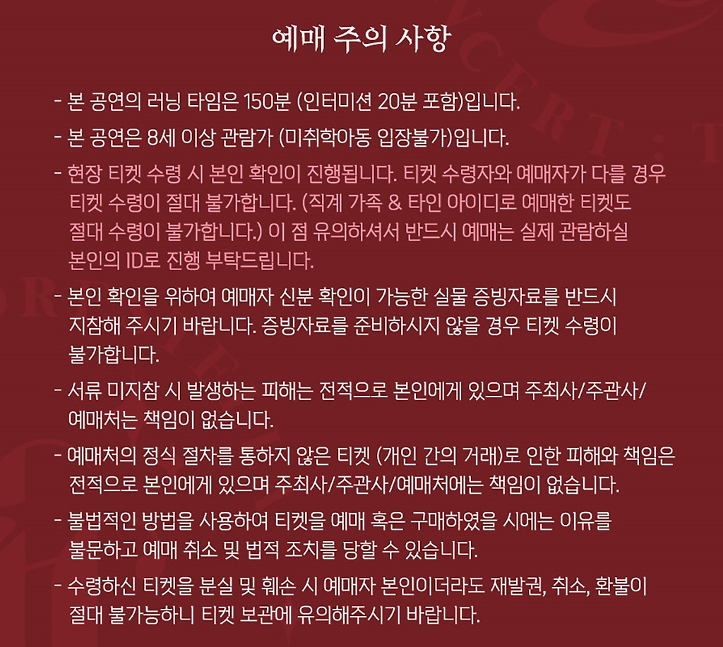 * 일반예매 구매매수 제한 : 회차당 1인 4매 (선예매 매수 포함)