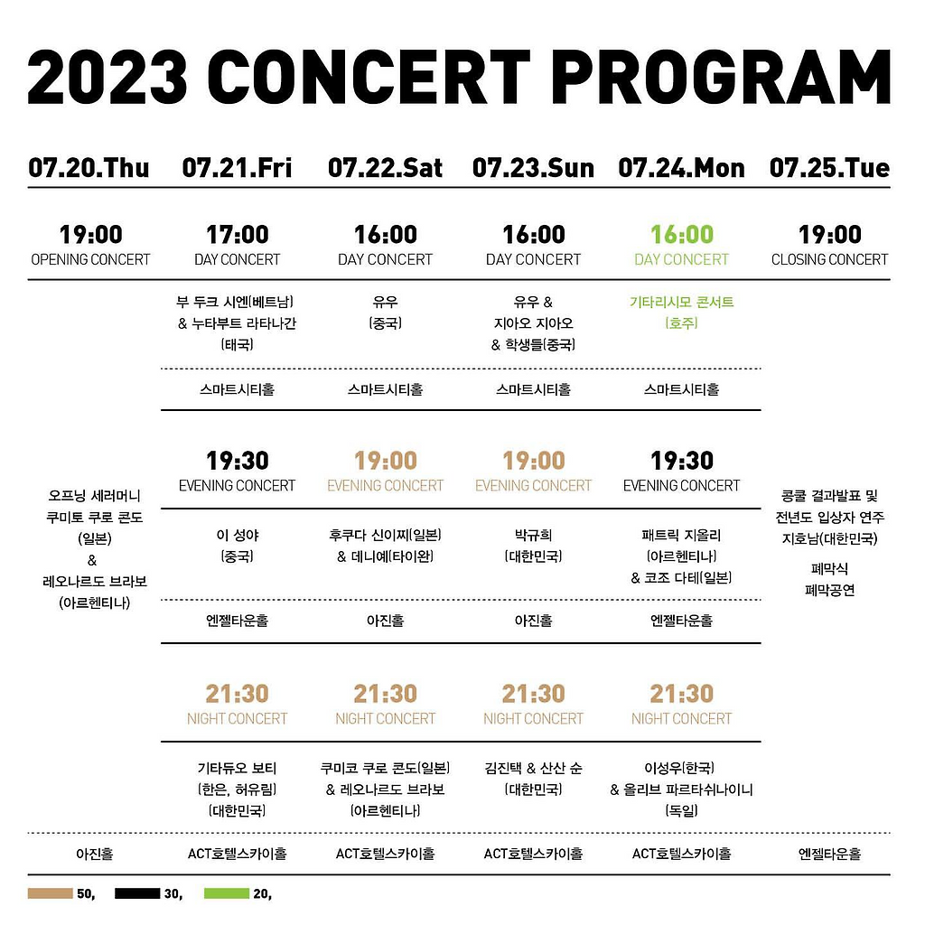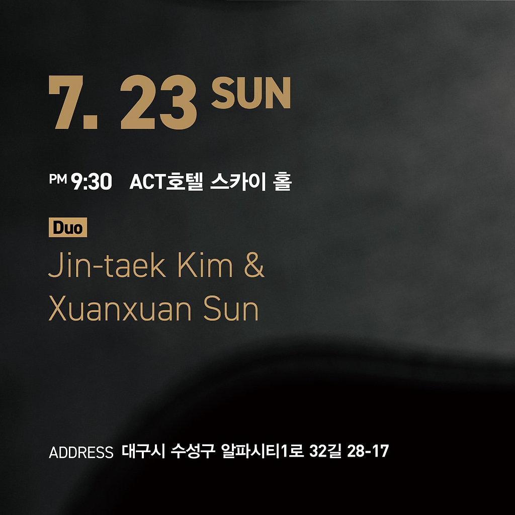 대구국제기타페스티벌의 셋째날 마지막 공연은 7월 23일 일요일 밤 9시30분에 ACT호텔 스카이홀에서 개최됩니다.