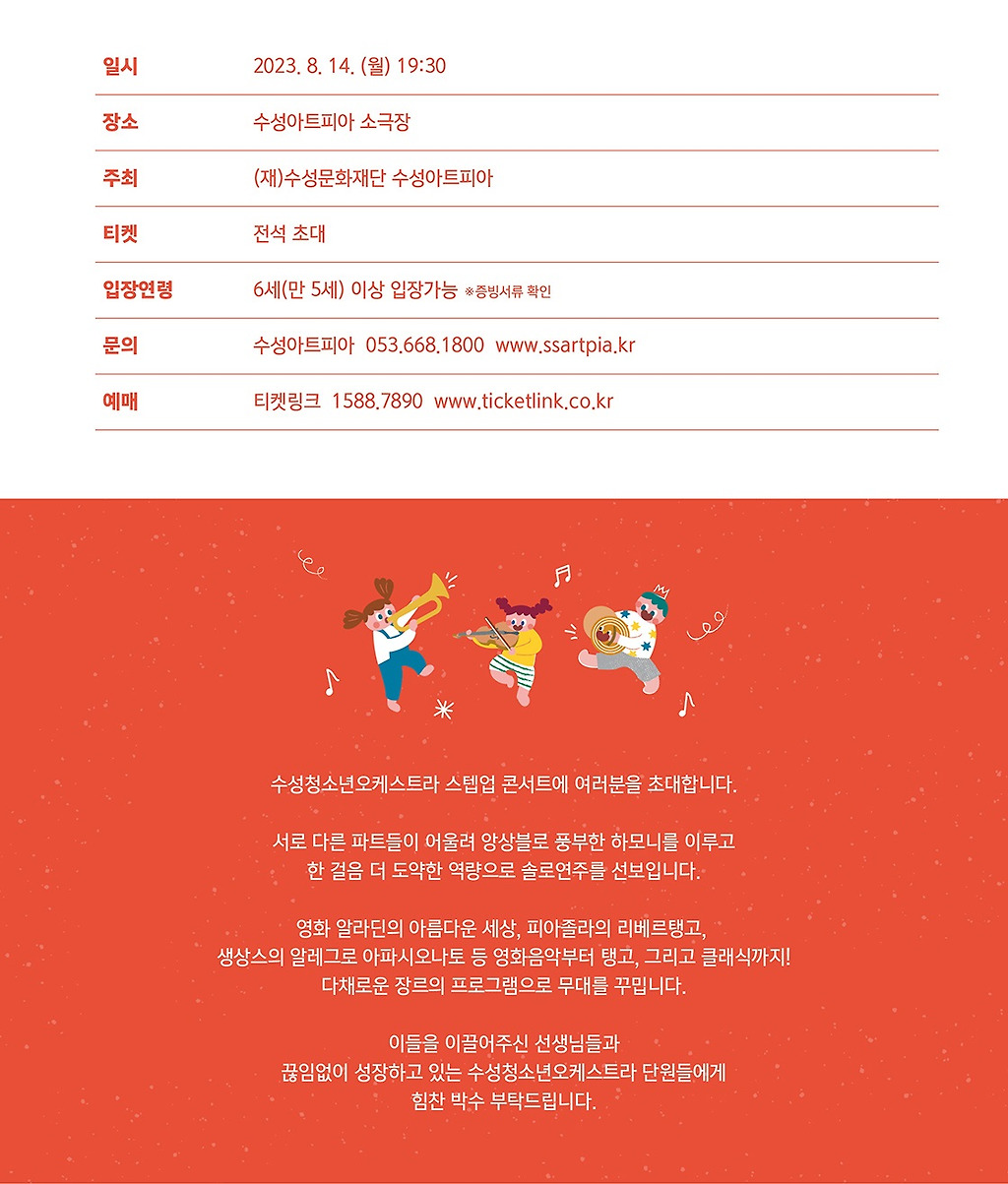 #대구연극 #대구뮤지컬 #대구공연 #대구문화 #대구클래식 #대구무료공연 #대구공연정보 #수성아트피아 #수성청소년오케스트라 #스텝업콘서트 #지휘_서찬영