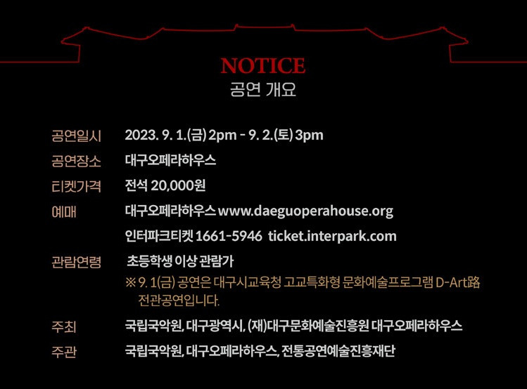 #대구연극 #대구뮤지컬 #대구공연 #대구문화 #대구국악 #대구공연정보 #대구오페라하우스 #국립국악원 #종묘제례악