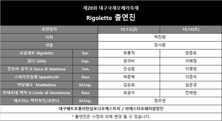 제20회 대구국제오페라축제 〈리골레토〉 - 대구 (interpark.com)
