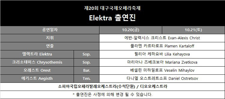 #대구연극 #대구뮤지컬 #대구공연 #대구문화 #대구오페라 #대구공연정보 #대구오페라하우스 #대구국제오페라축제 #오페라_엘렉트라