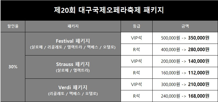 제20회 대구국제오페라축제 〈Festival 패키지〉(5작품) - 대구 (interpark.com)