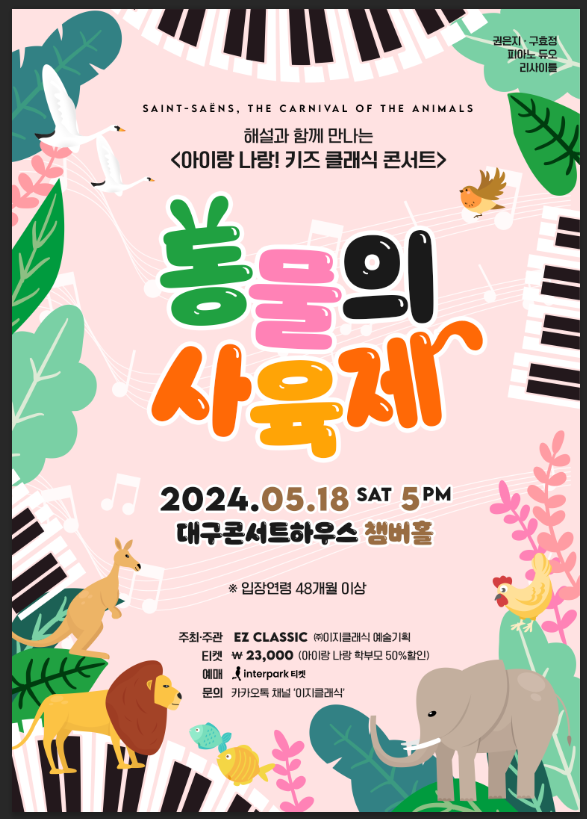 〈아이랑 나랑! 키즈 클래식 콘서트〉 동물의 사육제-대구 (interpark.com)