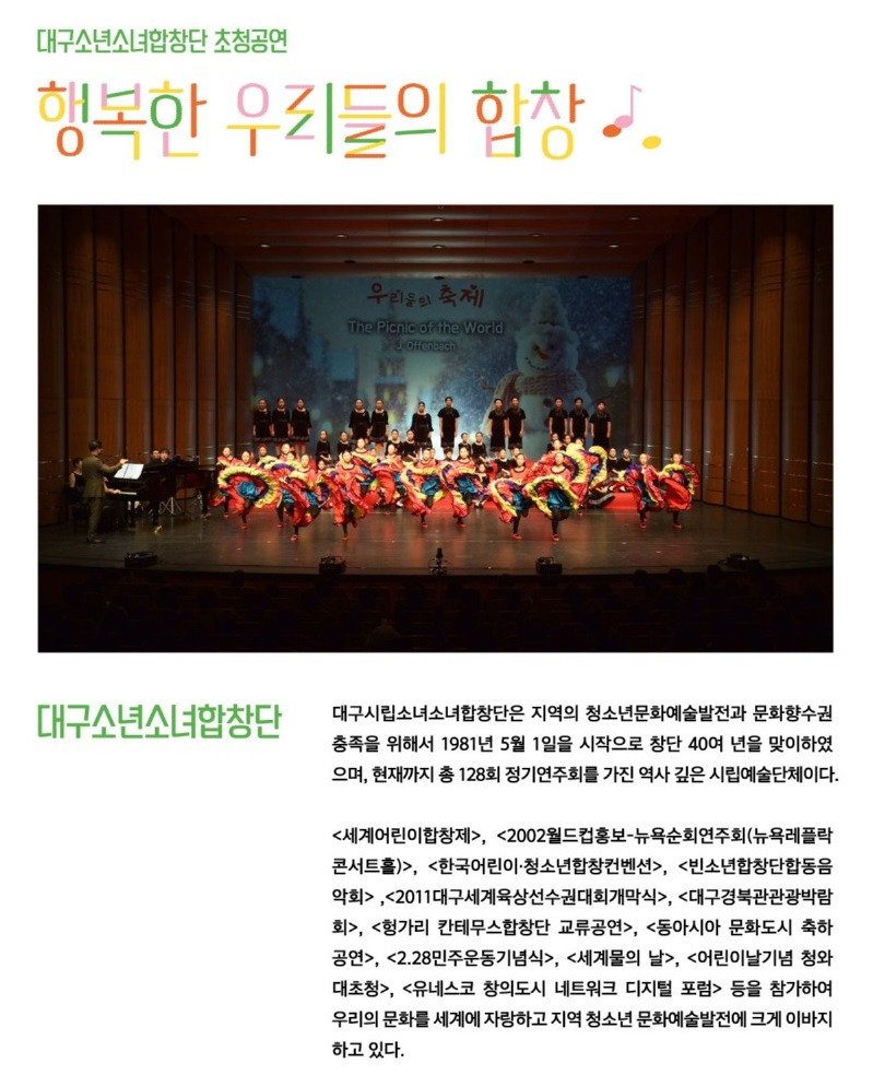 #대구연극 #대구뮤지컬 #대구공연 #대구문화 #대구무료공연 #대구공연정보 #어울아트센터 #대구시립소년소녀합창단 #행복한우리들의합창