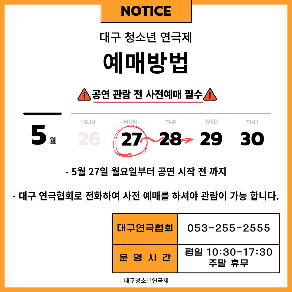 오늘부터 대구연극협회로 전화해서 사전예매!!