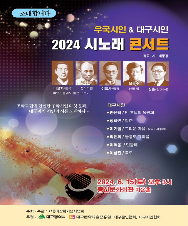 장두영 (사)이상화기념사업회 이사장은 "호국보훈의 달을 맞이하여 암담한 시대에 거칠게 몸으로 저항한 시인들의 시를 노래로 만들어 무대에 올림으로써 이들의 독립정신과 저항정신을 기리고자 한다"고 밝혔다.