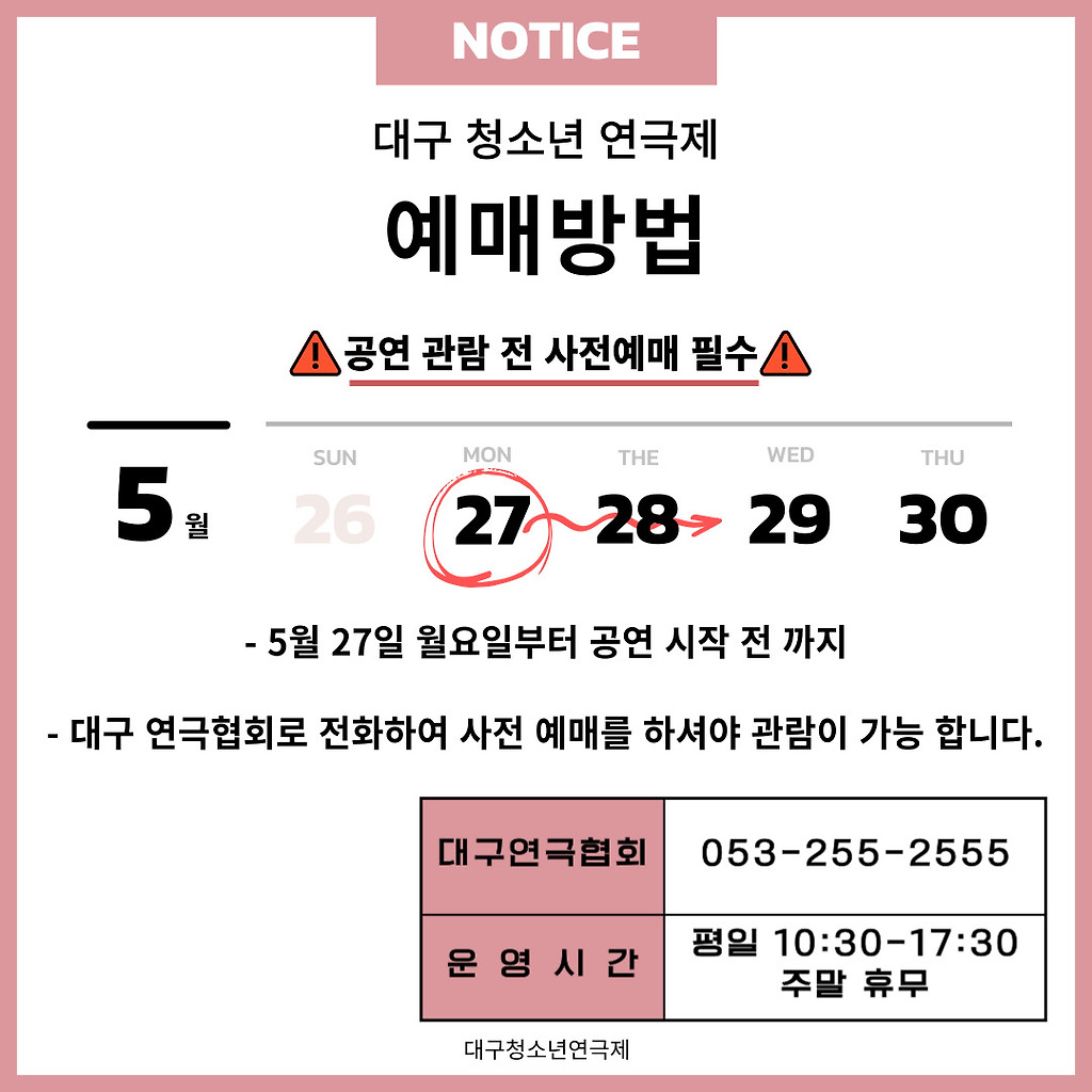 지금바로 대구연극협회로 전화해서 사전예매!!