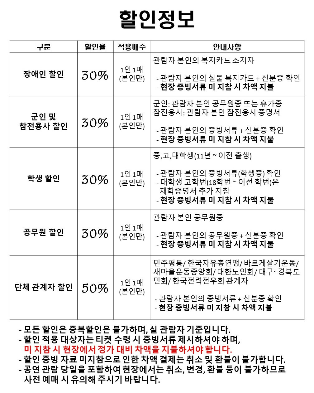 대구공연관람 및 정보문의 https://open.kakao.com/o/gHm2LEbg 오픈쳇팅방(쳇방은 승인후)