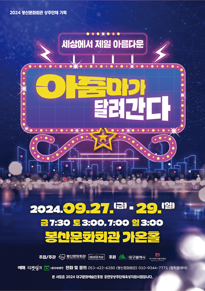 #대구연극 #대구뮤지컬 #대구공연 #대구문화 #대구공연정보 #봉산문화회관 #연극_아줌마가달려간다 #창작플레이 #대구일반인연극 #대구일반인극단 #해아람 #포시즌스카이 #대명공연거리