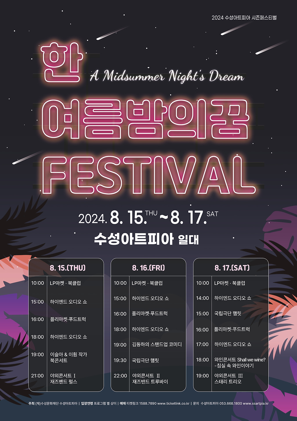#대구연극 #대구뮤지컬 #대구공연 #대구문화 #대구재즈 #대구공연정보 #대구무료공연 #수성아트피아 #한여름밤의꿈 #페스티벌 #재즈밴드_펄스 #재즈밴드_트루바이 #스태리트리오 #대구일반인극단 #대구일반인연극 #해아람 #포시즌스카이 #대명공연거리