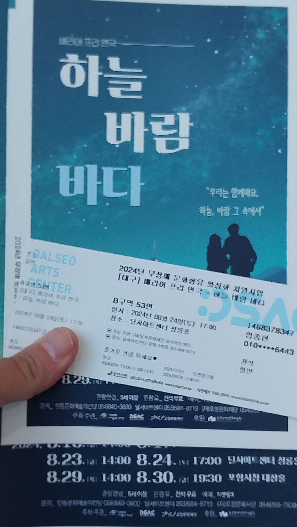 #대구연극 #대구뮤지컬 #대구공연 #대구문화 #대구공연정보 #대구공연후기 #달서아트센터 #연극_하늘바람바다 #베리어프리연극 #대명공연거리 #대구일반인극단 #대구일반인연극 #해아람 #포시즌스카이 #극단_한울림