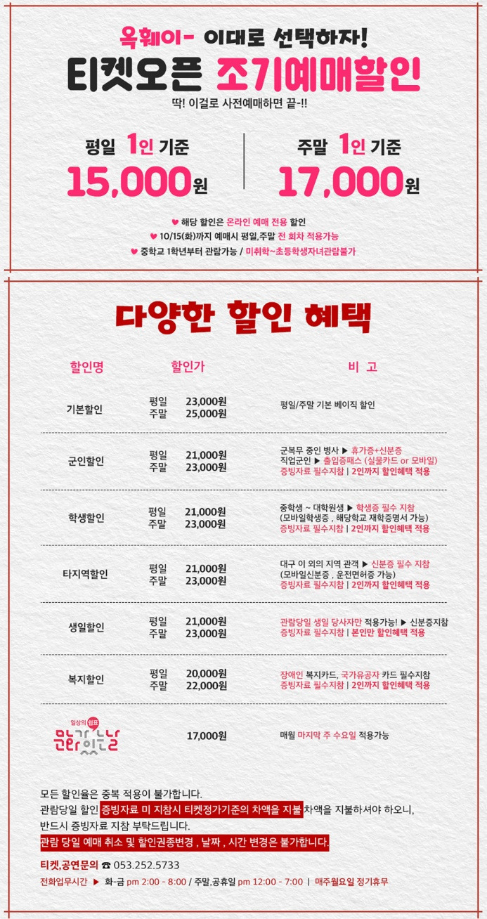 대구공연관람 및 정보문의 https://open.kakao.com/o/gHm2LEbg 오픈쳇팅방