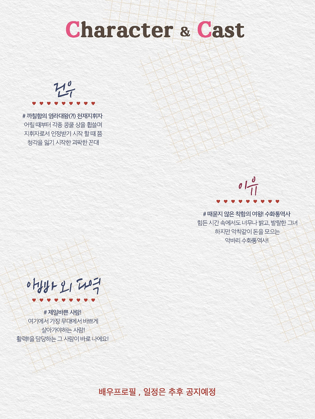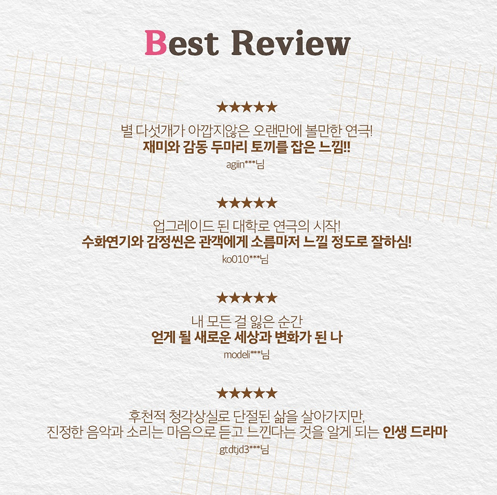 * 평일(화~금) 19시30분 / 토 15시, 18시 / 일 14시 30분, 17시 30분