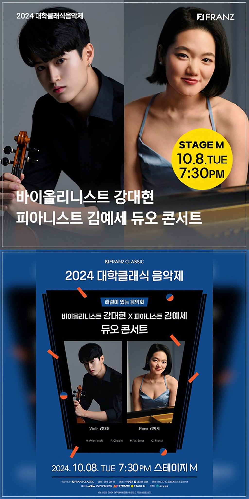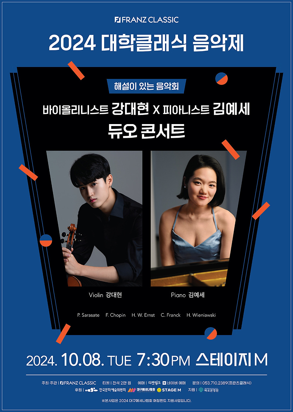 #대구연극 #대구뮤지컬 #대구공연 #대구문화 #대구클래식 #대구공연정보 #스테이지M #프란츠클래식 #바이올리니스트_강대현 #피아니스트_김예세 #대구일반인연극 #대구일반인극단 #대명공연거리 #해아람 #포시즌스카이 #해설이있는음악회