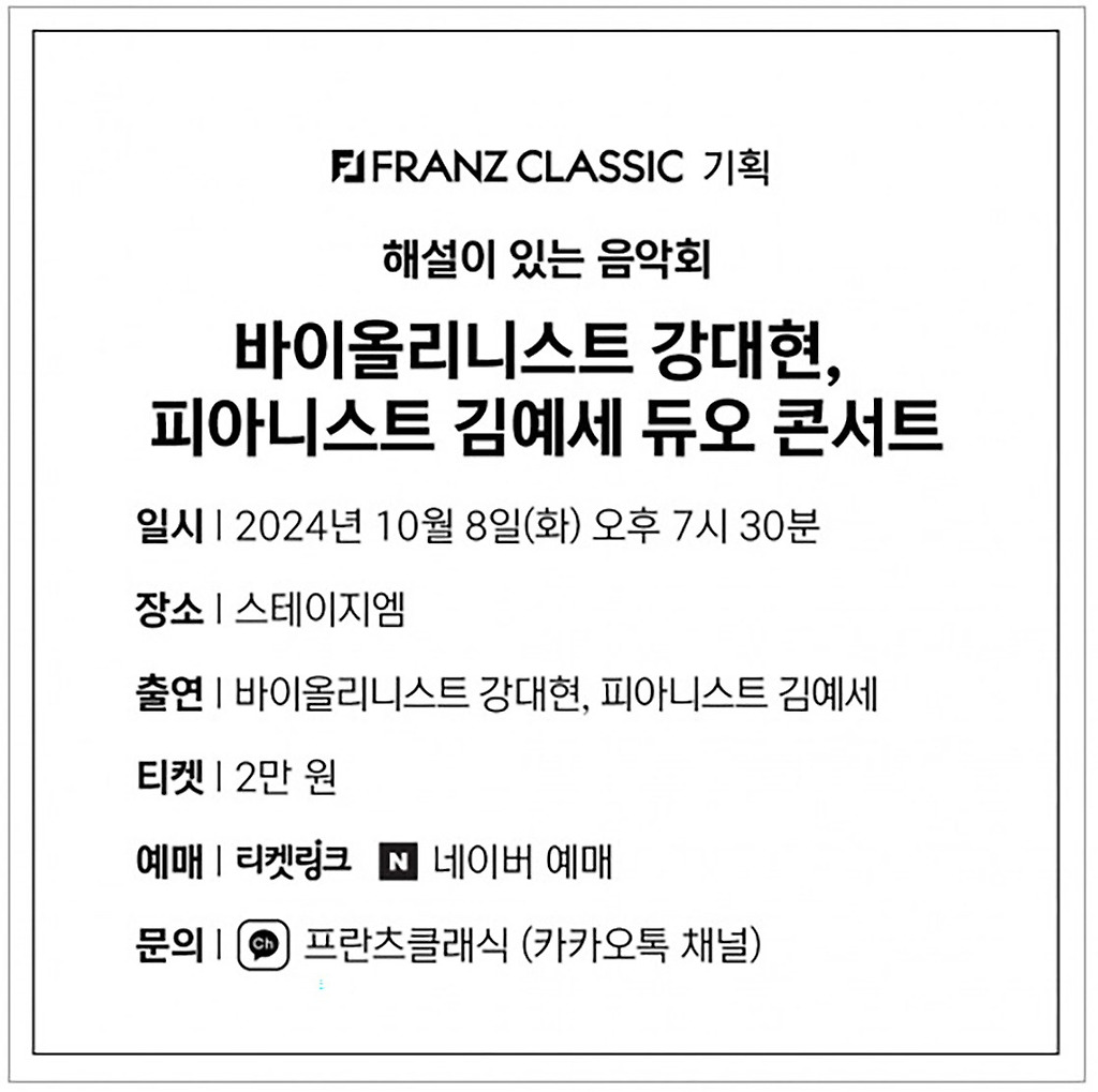 [24.10.08.] 바이올리니스트 강대현 X 피아니스트 김예세 듀오 콘서트
