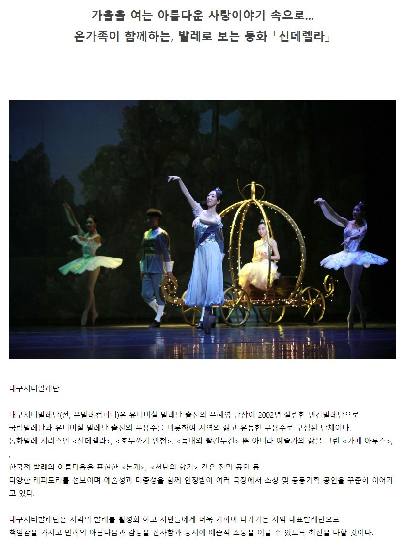 #대구연극 #대구뮤지컬 #대구공연 #대구문화 #대구공연정보 #대구발레 #수성아트피아 #대구시티발레단 #신데렐라 #대구일반인극단 #대구일반인연극 #대명공연거리 #해아람 #포시즌스카이