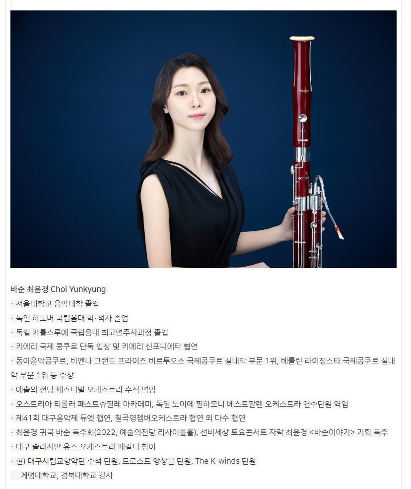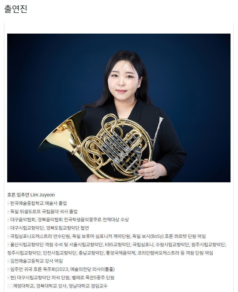 [24.10.02.] 대구시립교향악단 실내악의 발견 II 체임버 시리즈 ⑤ 호른 임주연 & 바순 최윤경 듀오 리사이틀