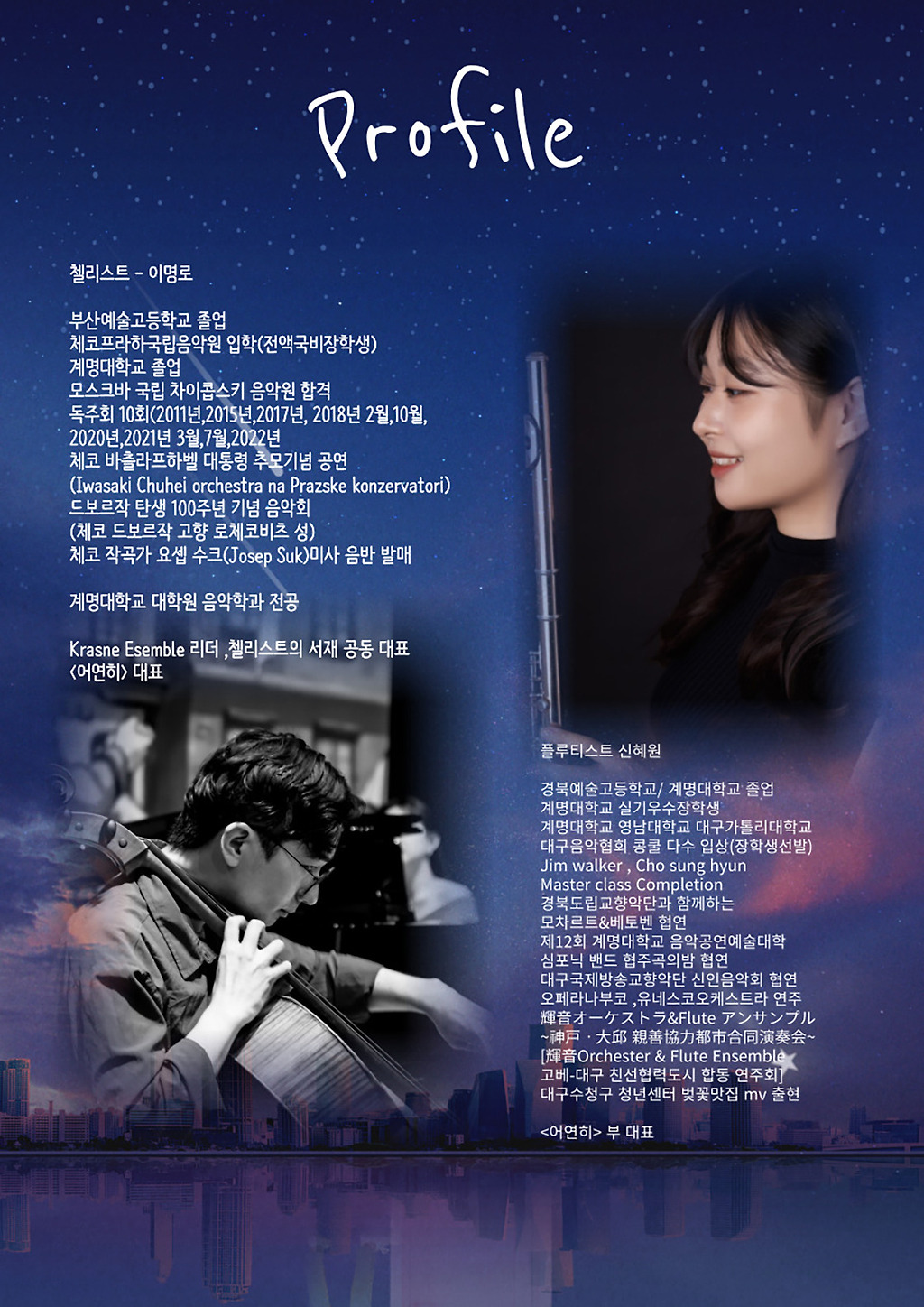 #대구연극 #대구뮤지컬 #대구공연 #대구문화 #대구클래식 #대구공연정보 #어연히하우스 #지브리를품은클래식 #내마음의문단속 #첼리스트_이명로 #플루티스트_신혜원 #대명공연거리 #대구일반인극단 #대구일반인연극 #해아람 #포시즌스카이