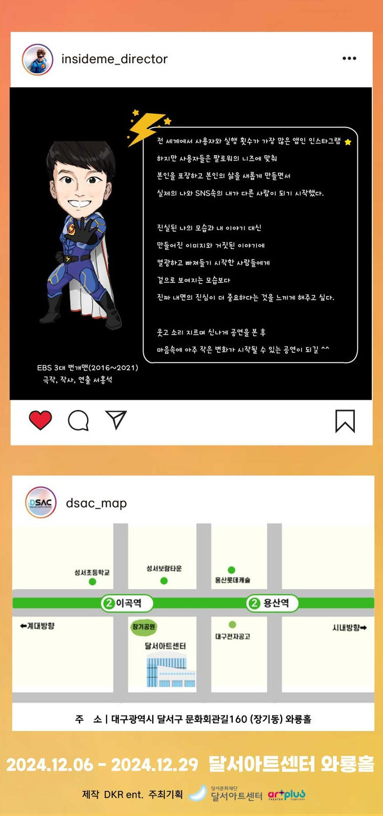#대구연극 #대구뮤지컬 #대구공연 #대구문화 #대구공연정보 #대구공연관람 #대구문화생활 #달서아트센터 #뮤지컬_인사이드미 #대명공연거리 #대구일반인극단 #대구일반인연극 #해아람 #포시즌스카이