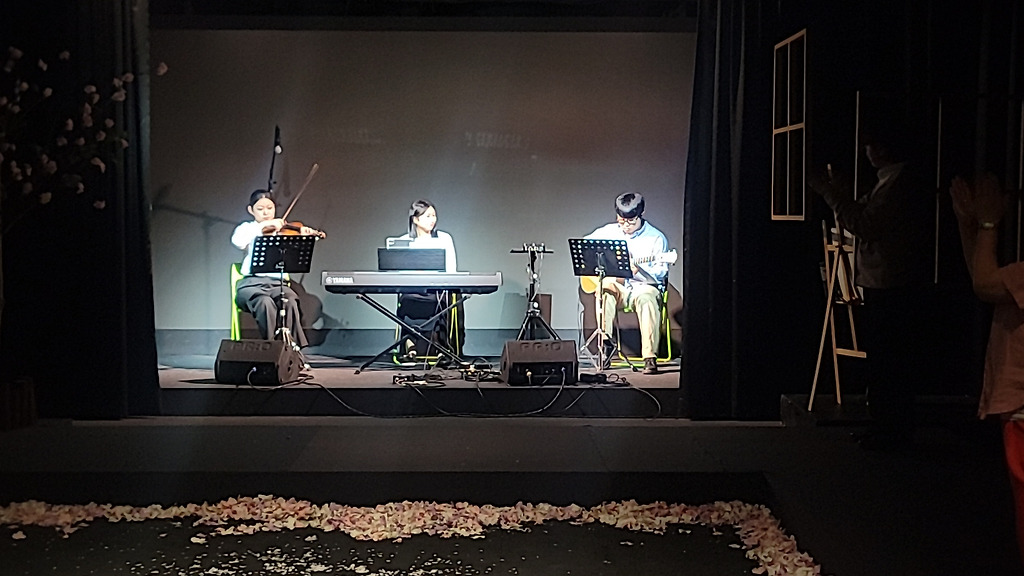 음악이 피아노, 바이올린, 기타의 라이브로 진행 되었다는점.