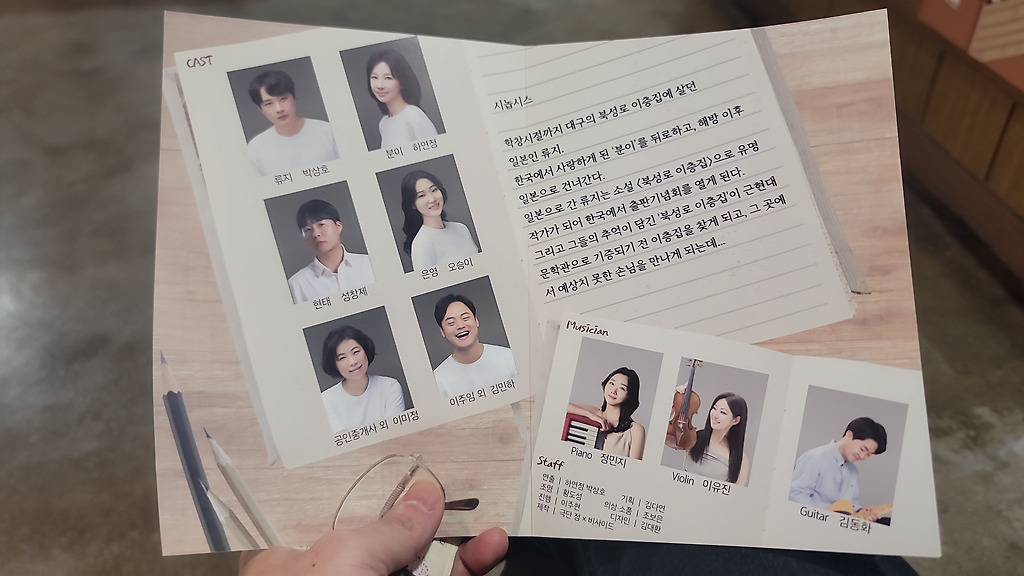 잔잔한 공연이였는데, 중요한 대사부분에는 음악이 잔잔하게 깔면서