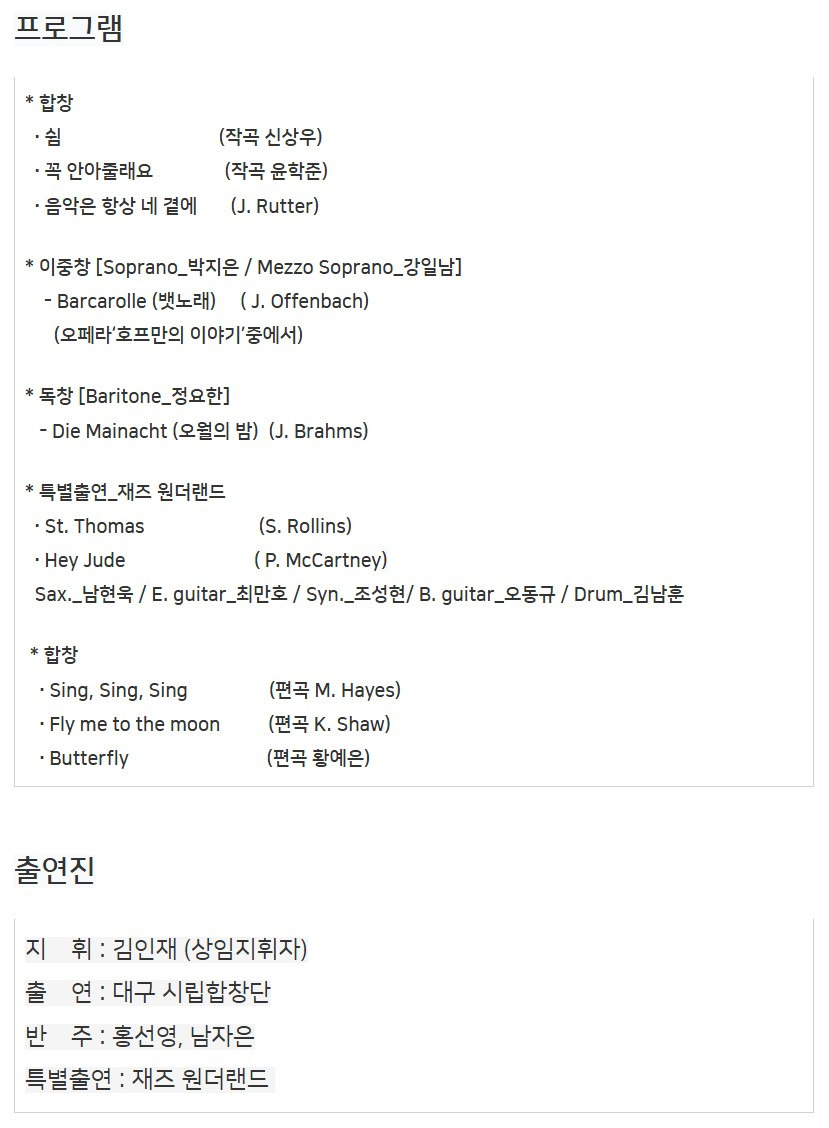 #대구연극 #대구뮤지컬 #대구공연 #대구문화 #대구공연정보 #대구콘서트하우스 #대구시립합창단 #오월음악회 #대명공연거리 #대구일반인극단 #대구일반인연극 #해아람 #포시즌스카이