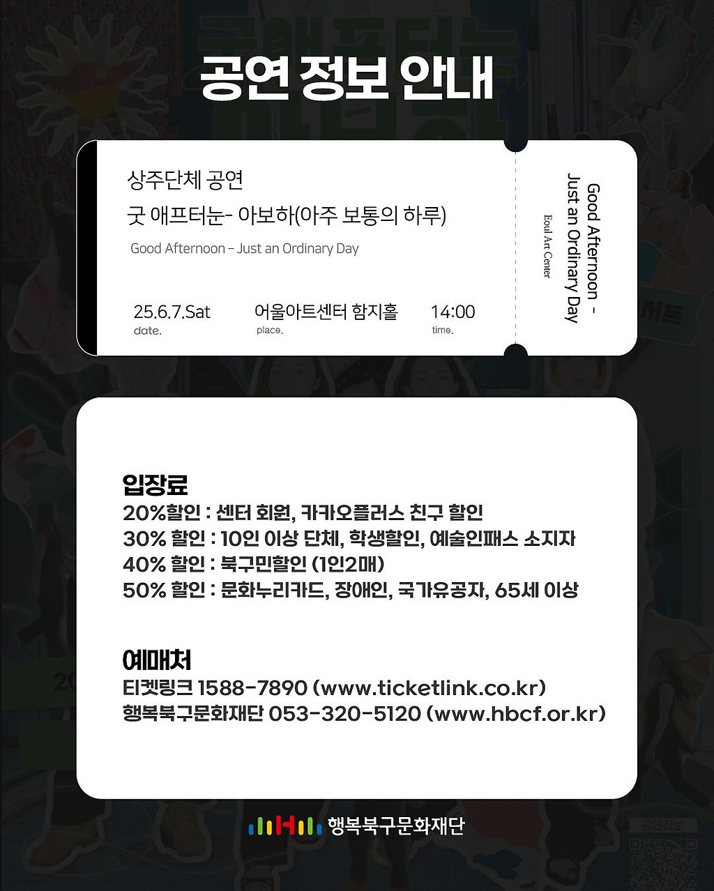 문의 : 053-320-5120 ((재)행복북구문화재단 어울아트센터)