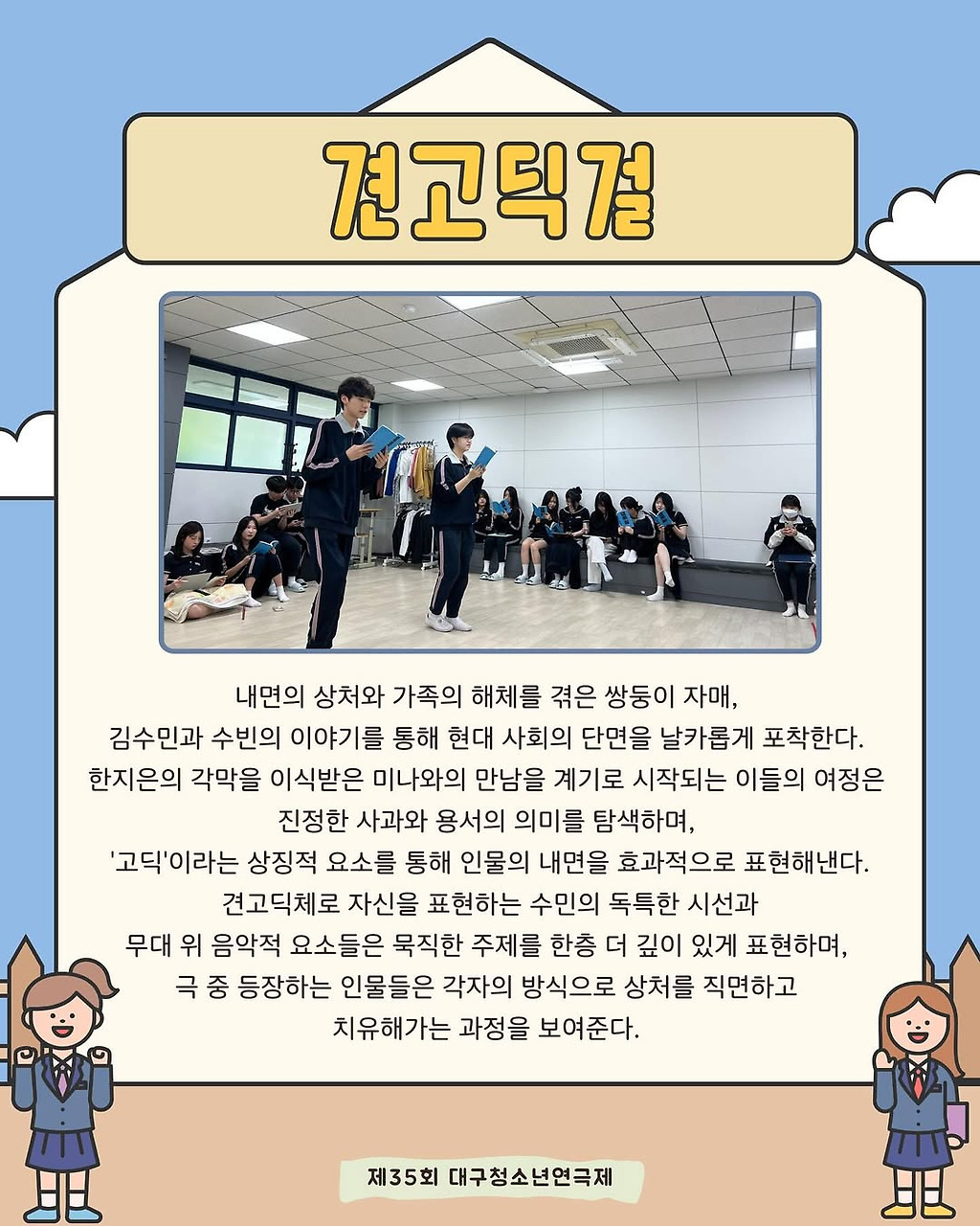 #대구연극 #대구뮤지컬 #대구공연 #대구문화 #대구공연정보 #대명공연거리 #대구청소년연극제 #한울림소극장 #성산고등학교 #연극_견고딕걸 #대구일반인극단 #대구일반인연극 #해아람 #포시즌스카이