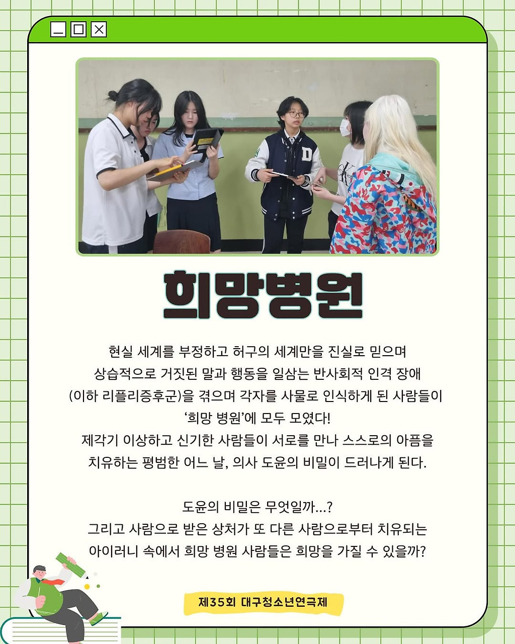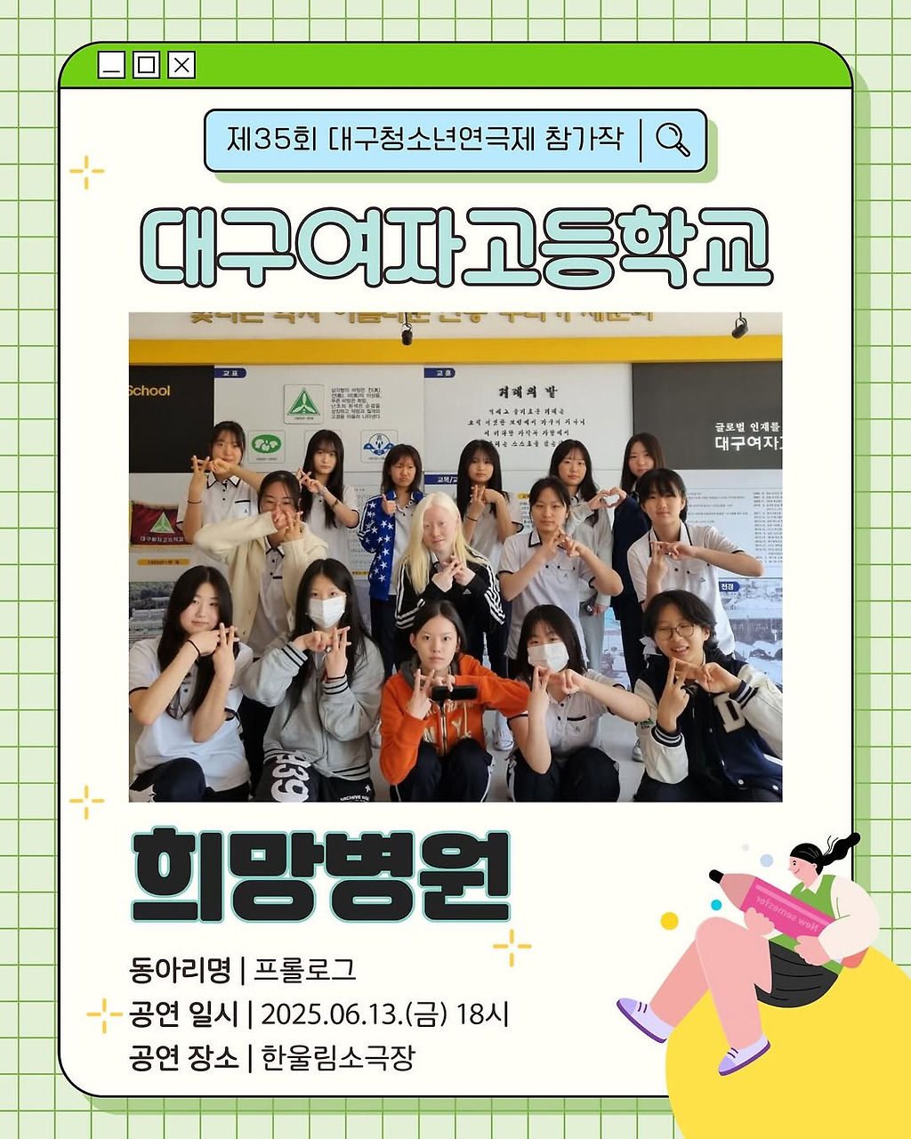 #대구언극 #대구뮤지컬 #대구공연 #대구문화 #대구공연정보 #대구무료공연 #대명공연거리 #대구청소년연극제 #한울림소극장 #대구여고 #연극_희망병원 #대구일반인극단 #대구일반인연극 #해아람 #포시즌스카이