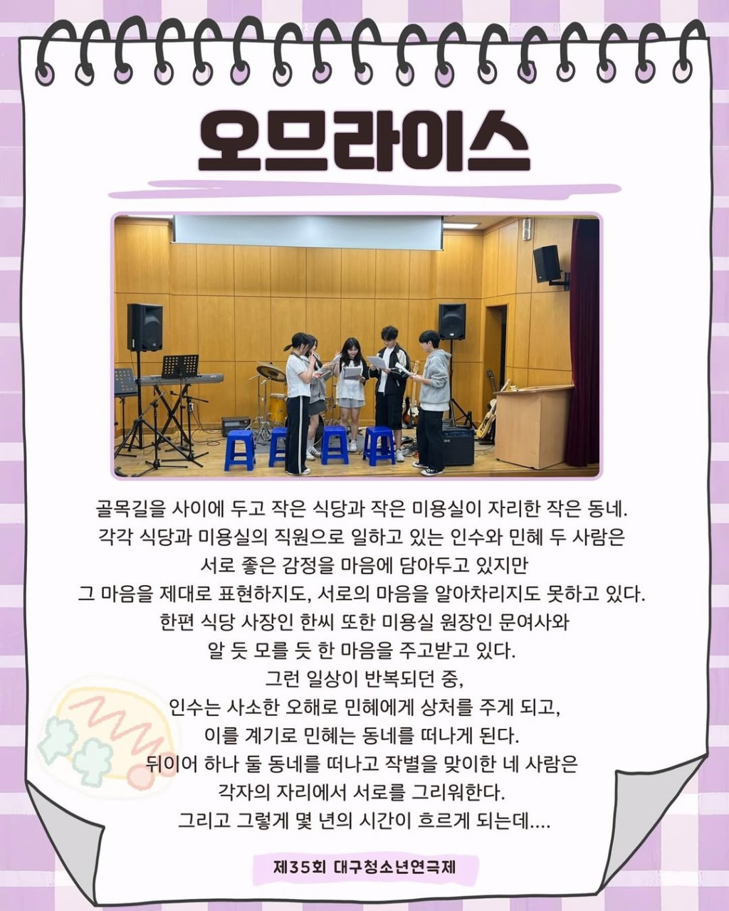 #대구연극 #대구뮤지컬 #대구공연 #대구문화 #대구무료공연 #대구공연정보 #대명공연거리 #대구청소년연극제 #소극장길 #한울림소극장 #대구일반인극단 #대구일반인연극 #해아람 #포시즌스카이