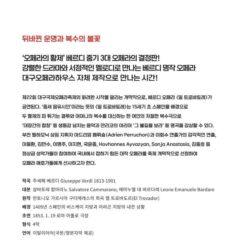 제22회 대구국제오페라축제 〈일 트로바토레〉 - 대구 | NOL 티켓