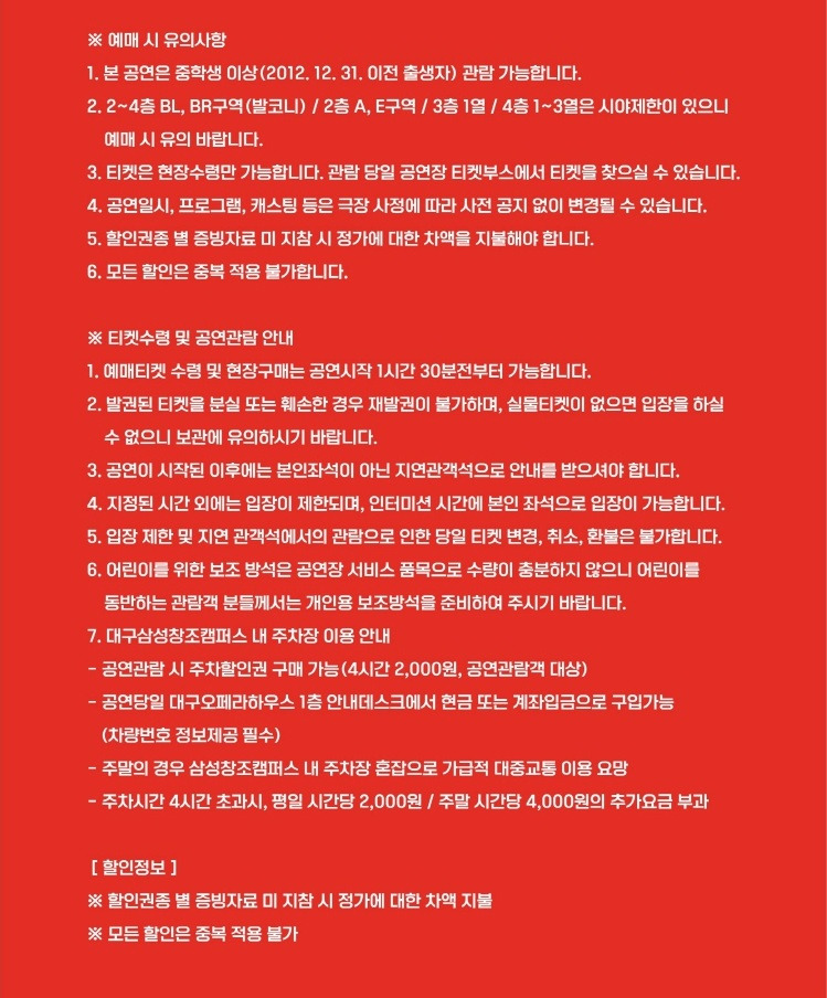 공연문의 053-430-7472 / 전화예매 1661-5946