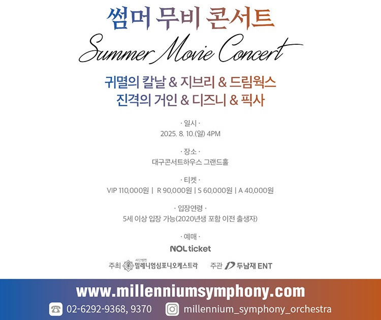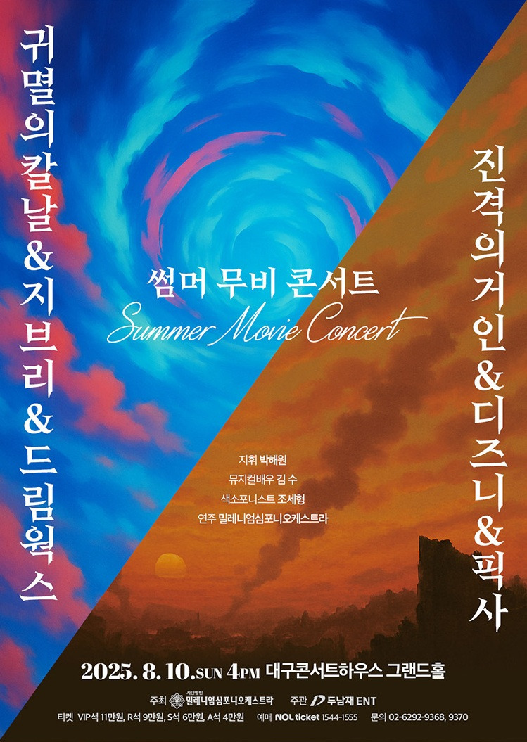 썸머 무비 콘서트〈귀멸의 칼날 & 진격의 거인 & 지브리 & 디즈니 & 픽사 & 드림웍스〉 - 대구 | NOL 티켓