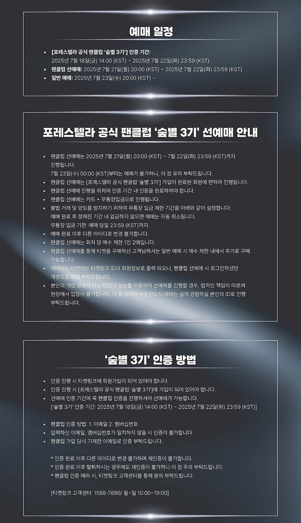 팬클럽 선예매 인증 : 2025년 07월 18일(금) 14시 ~ 2025년 07월 22일(화) 23시 59분