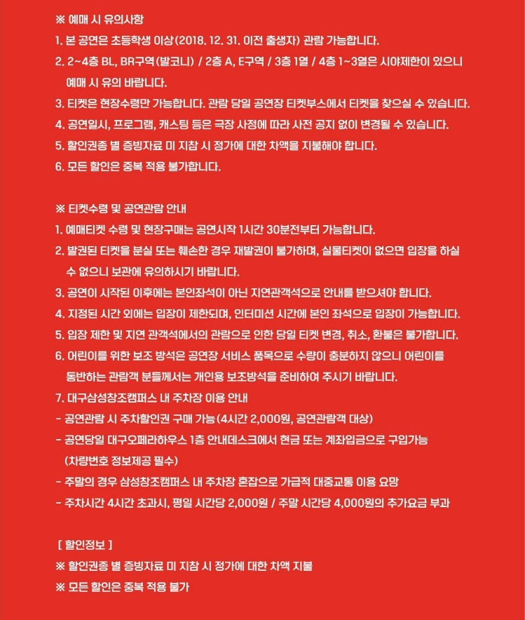 공연문의 053-430-7472 / 전화예매 1661-5946