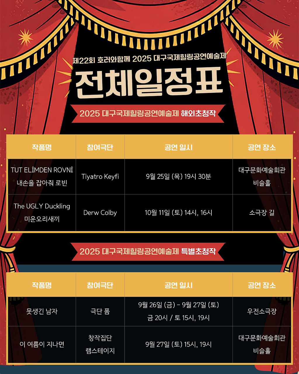 2025 대구국제힐링공연예술제 전체 일정표입니다